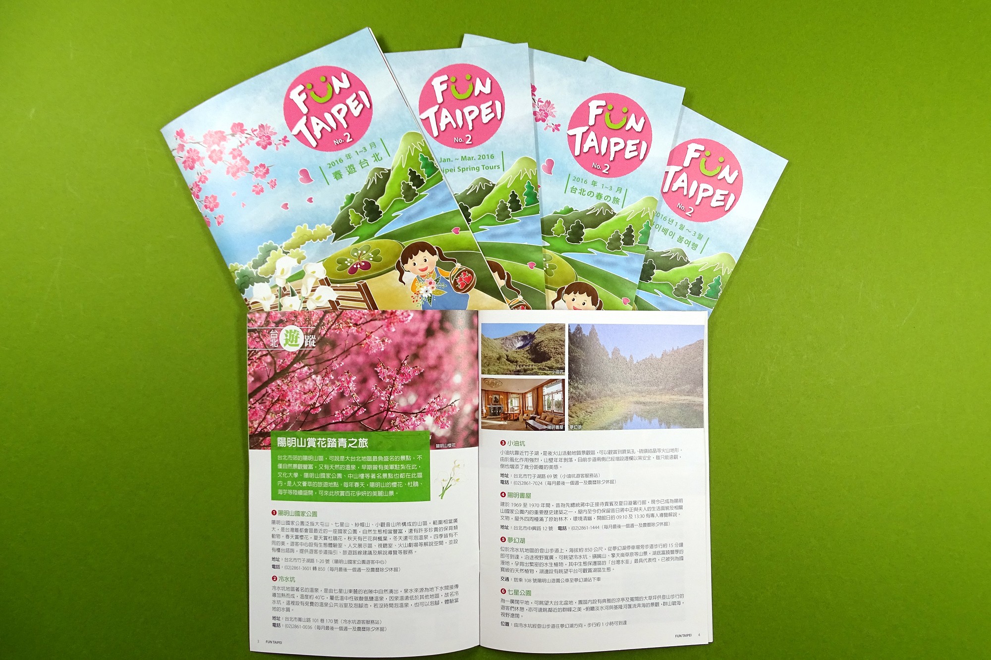 台北市觀光傳播局發行的105年春季號《Fun Taipei》為您規劃3條適合春天的旅遊路線,不論是上陽明山賞花迎春、到內湖山區品嘗嬌豔欲滴的鮮紅草莓,或是走訪大稻埕感受百年風華的年節氣氛,春季的台北猶如盛開的花朵,處處充滿蓬勃生機,歡迎來台北尋找春天的芳蹤,享受一場春之饗宴。 《Fun Taipei》觀光活動季刊共發行中、英、日、韓文4種語版,凸顯台北市的國際觀光都市定位,去年10月發行創刊號後,深受各界好評,各配送點皆旋即便索取告罄。媒體出版科科長謝佩君表示,為了讓更多國內外旅客都能人手一本,從本期開始增加發行數量,歡迎民眾至各旅遊服務中心、觀光景點及飯店等地點免費取閱。