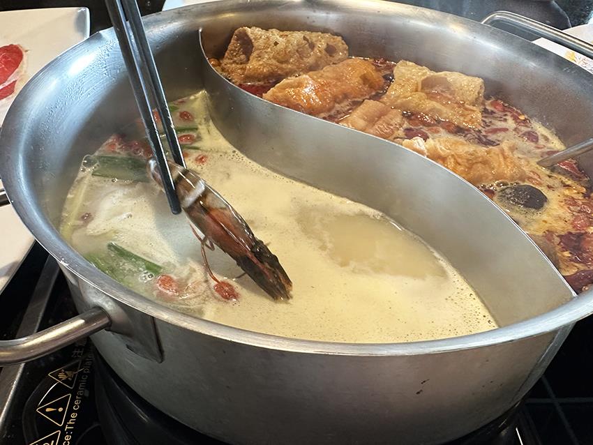 由於很少吃到蒙古麻辣鍋,這次就來嚐鮮一下,兩種湯底分別選擇「蒙古麻辣鍋」及「養生骨鈣鍋」。