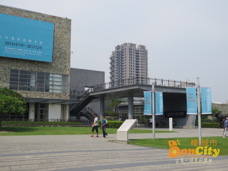 從台中國立美術館正門啣著草綠的石子步道走去,會看到為數不少的裝置藝術佇立在美術館中心的四周,