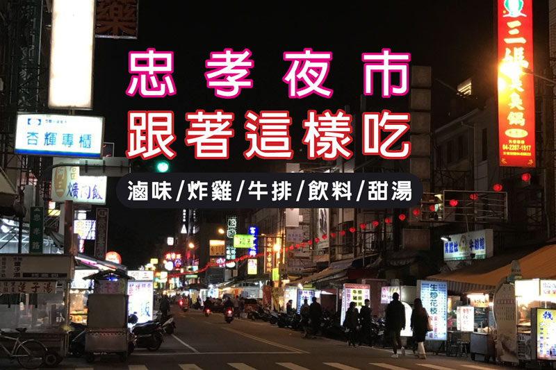 忠孝夜市靠近中興大學,是台中市多樣的宵夜中心,聚集的小吃口味及種類與熱鬧不亞於中華夜市。