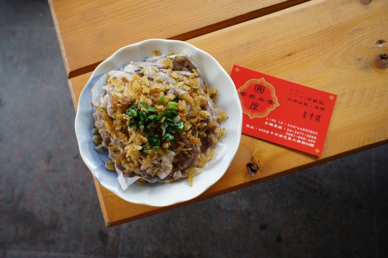 ★芋籤粄:客家語稱「蝲蠐粄」,是東勢地區客家特色小點,口感有別於芋粿巧,採用精選芋頭,削成籤條,條條堆疊,交織如蝲蠐型狀而命名。入口香鬆軟的芋頭籤粄,搭配酥脆蝦皮以及青蔥,層次口感,冷熱皆宜。