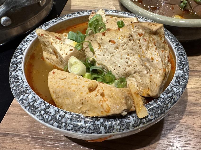 蠻嗆辣的麻辣味,食用時要小心不要用力吸進湯汁,很容易嗆到。而且是麻辣豆腐比較明顯,麻辣鴨血倒是比較沒那麼嗆,也許是豆腐的孔洞吸滿麻辣湯汁的關係。