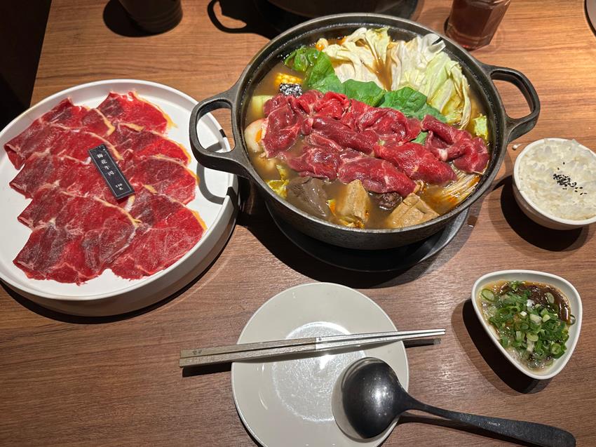 壽喜燒選擇的雙主餐肉盤為梅花牛肉和梅花豬肉,有兩種不同肉盤交錯搭配著吃,在享用過程中味覺也較有變化。