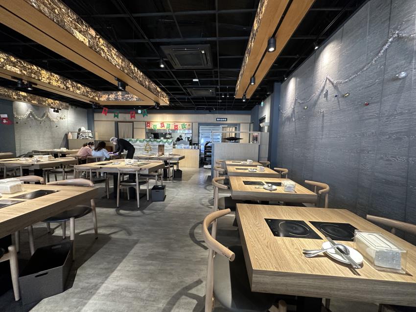 以不大的空間來說,座位數算多,換言之桌座位就不會很寬敞(桌上放上菜盤、肉盤和碗筷就幾乎沒空間,下方有圖可參照)。