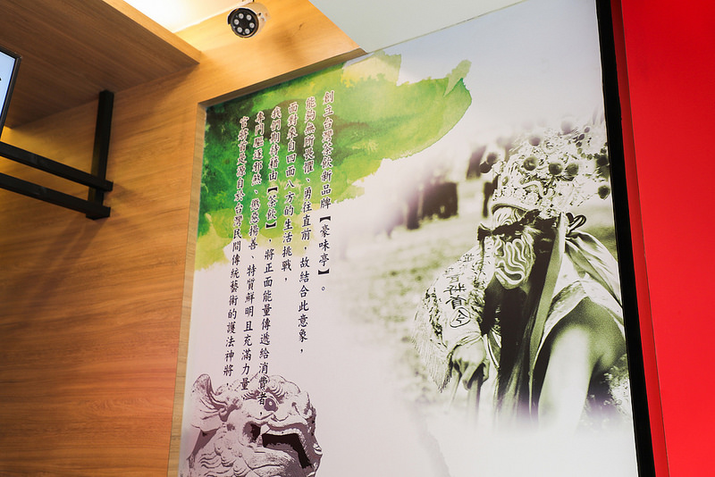 店家採用紅色色系,裡面也滿有趣的,既是飲料店,但是在設計上卻出現了台灣傳統文化,是與廟宇相關的傳統文化,