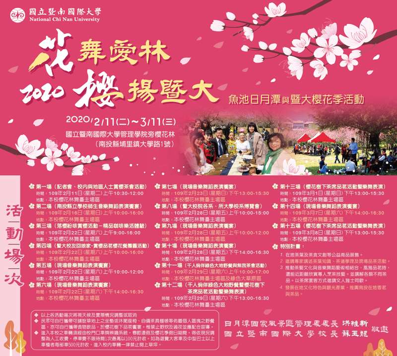 南投縣立學校師生音樂舞蹈表演饗宴,上午10時至下午4時,櫻花林舞臺主場區