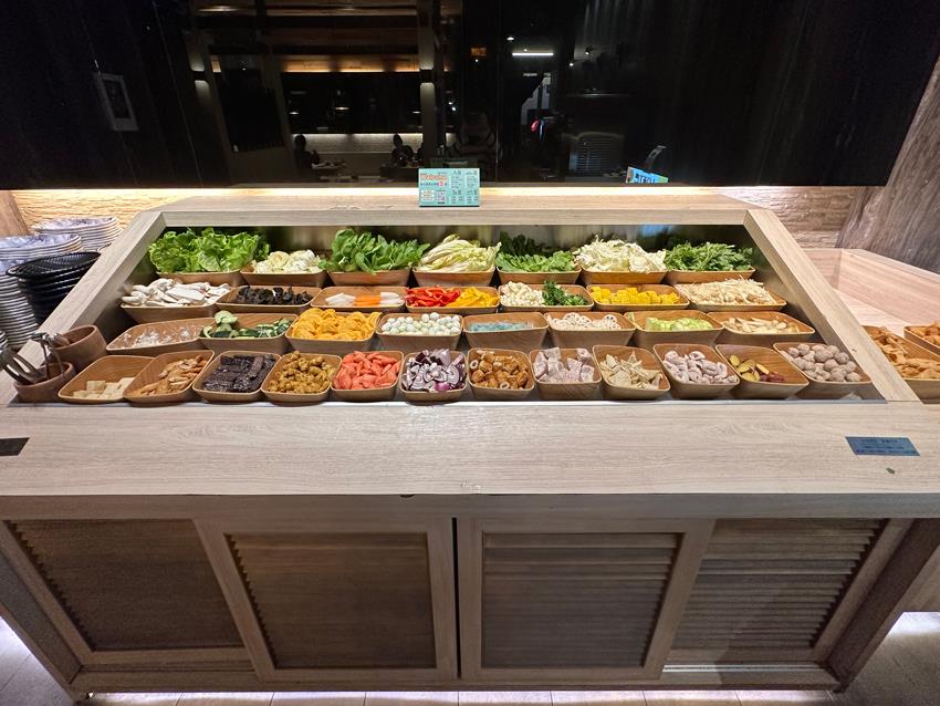 菜盤改為蔬食自助吧真的很不錯,想吃什麼夾什麼,有超過30種的生鮮蔬菜(葉菜、根莖類、瓜類、菇類通通有)與火鍋料無限供應,還有花枝滑和限量的蝦仁滑喔!