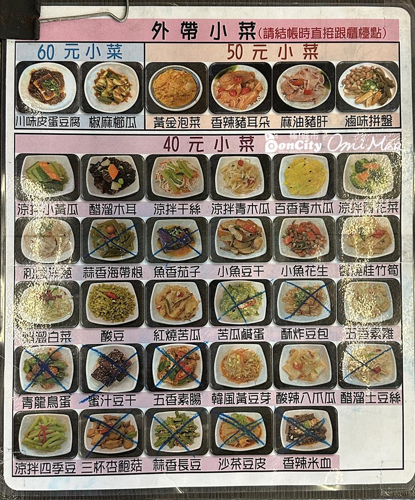 小菜菜單貼在櫃檯桌面上,外帶點餐結帳時一併告訴店員。