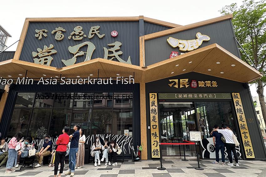 刁民酸菜魚公益店位於公益路與永春東七路口,外牆上斗大又粗曠的文字讓人很難不注意到。