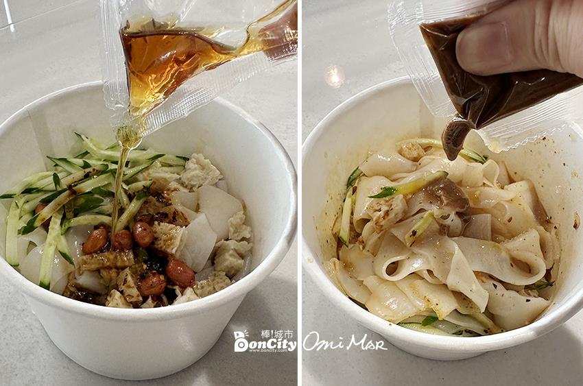 買了兩碗外帶,醬料包是另外放,一包醬汁一包麻醬,要吃的時候再分別倒入涼皮中。
