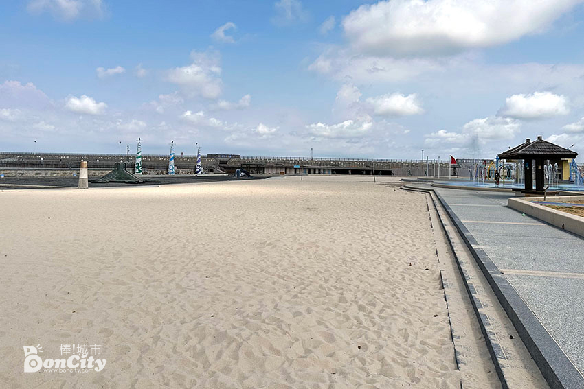 這片臨海的休憩園區也興建了受小朋友喜愛的親水區域,經過藝術家的巧手雕刻,栩栩如生的漁夫工作像,更為當地獨有的漁村文化作了最佳詮釋。各式裝置藝術更是以鮮豔色彩與天馬行空的想像力為此地增添了更多趣味,每個角落都很是精采!